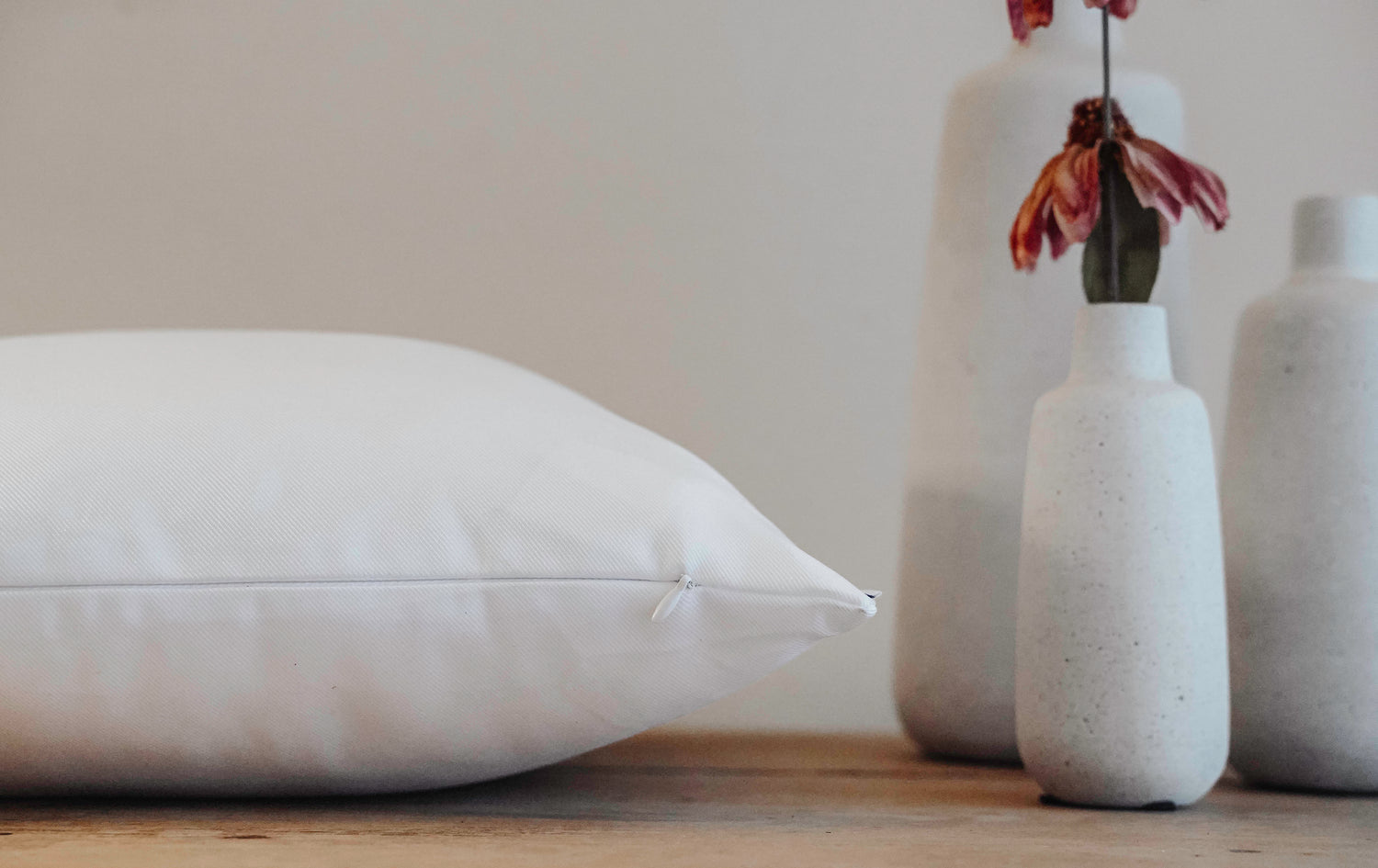 Bezug und herausnehmbares Innenkissen in weiß und 100% recyceltes Polyester