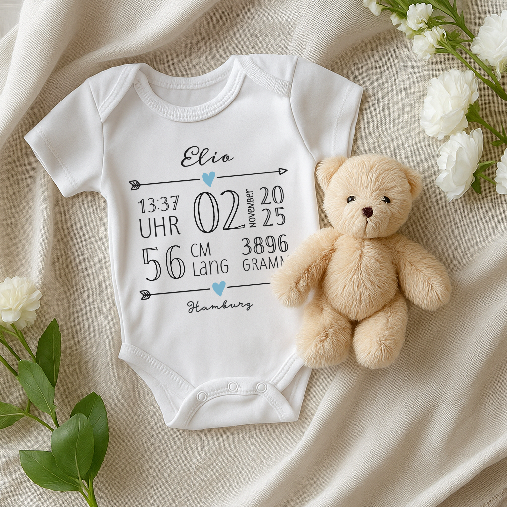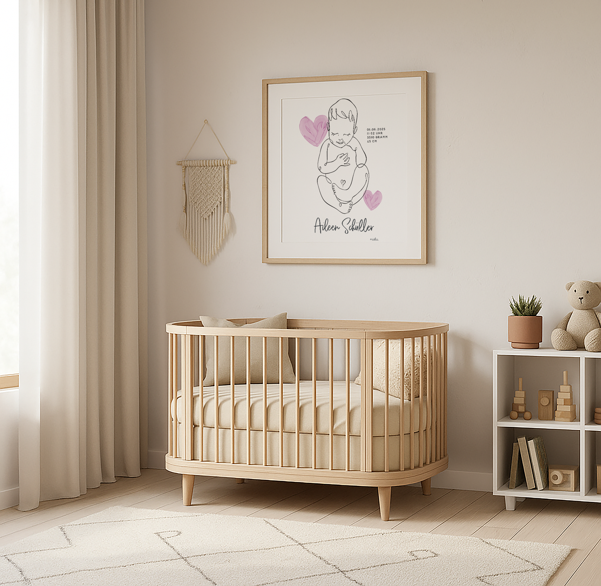 Die liebevoll designte Geburtsdaten mit Namen, Geburtsdatum, Uhrzeit, Gewicht und Länge ist ein ganz persönliches Erinnerungsstück – perfekt als Geschenk oder Dekoration fürs Kinderzimmer.