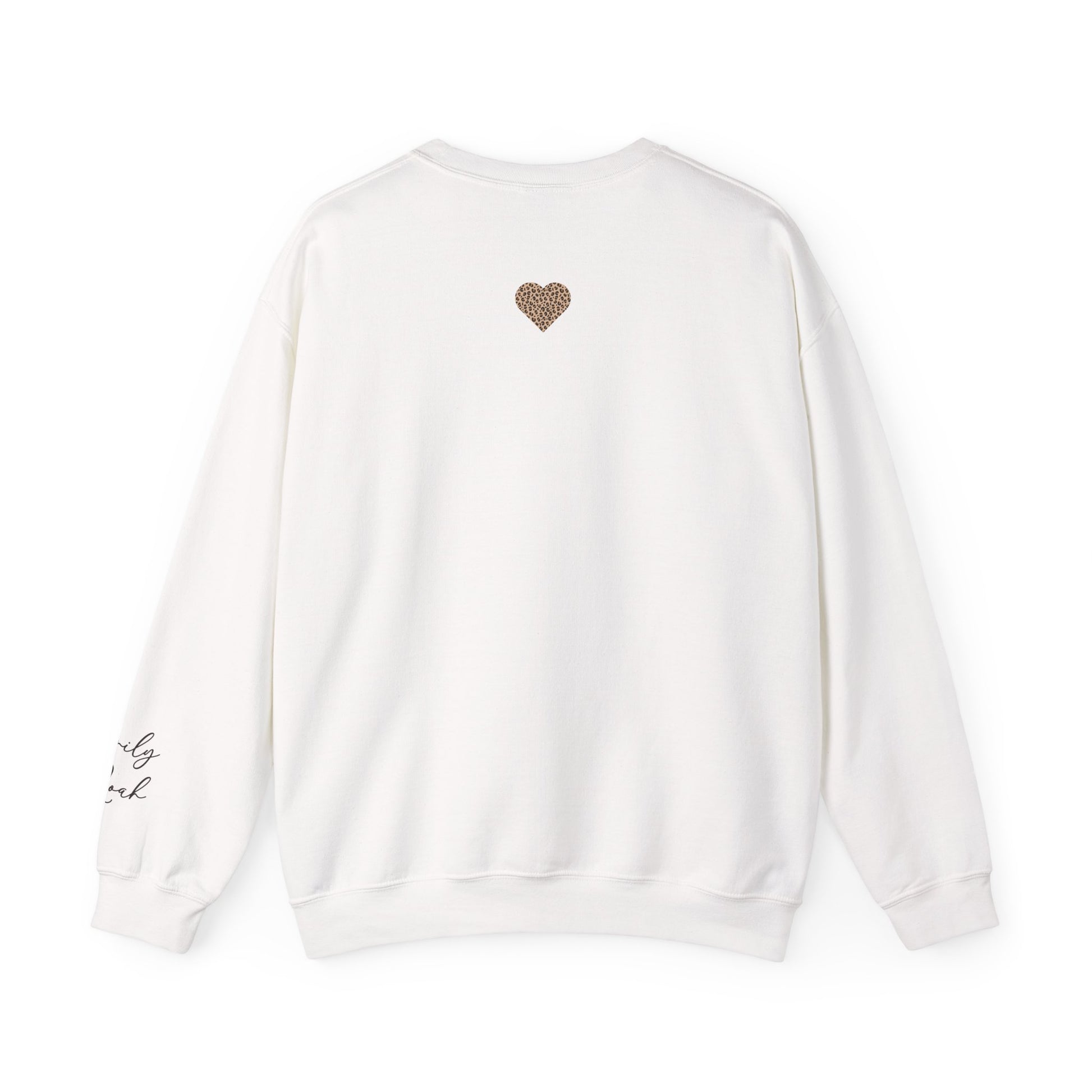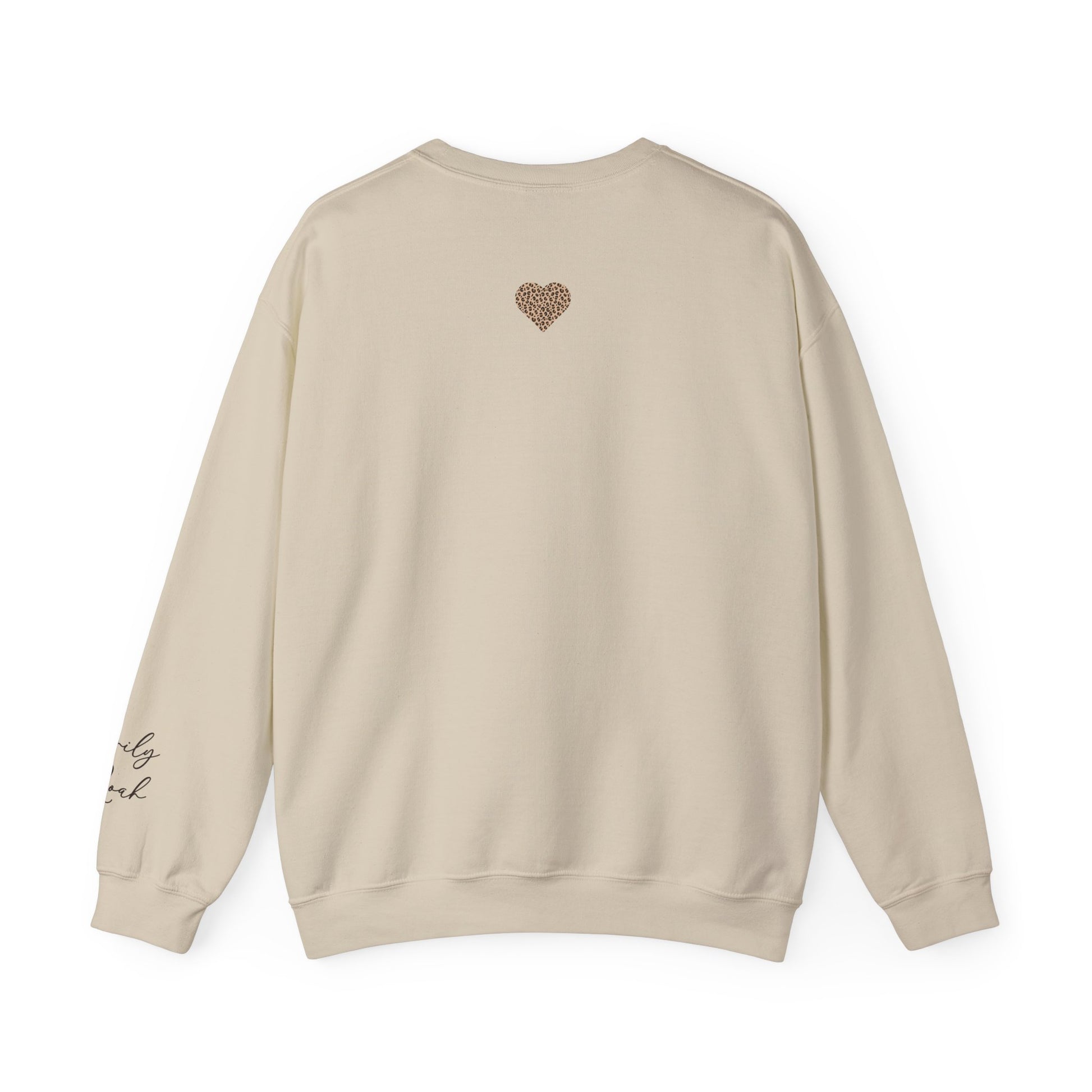 Weich, gemütlich und dezent stilvoll. Dieses Crewneck-Sweatshirt fühlt sich an wie eine warme Umarmung und verbindet modernes Design mit emotionaler Bedeutung. Auf der Vorderseite setzt der geschwungene Schriftzug „MAMA“ im feinen Leo-Print ein ruhiges, selbstbewusstes Statement. Auf dem Rücken, zwischen den Schulterblättern, rundet ein kleines Herz das Design liebevoll ab.